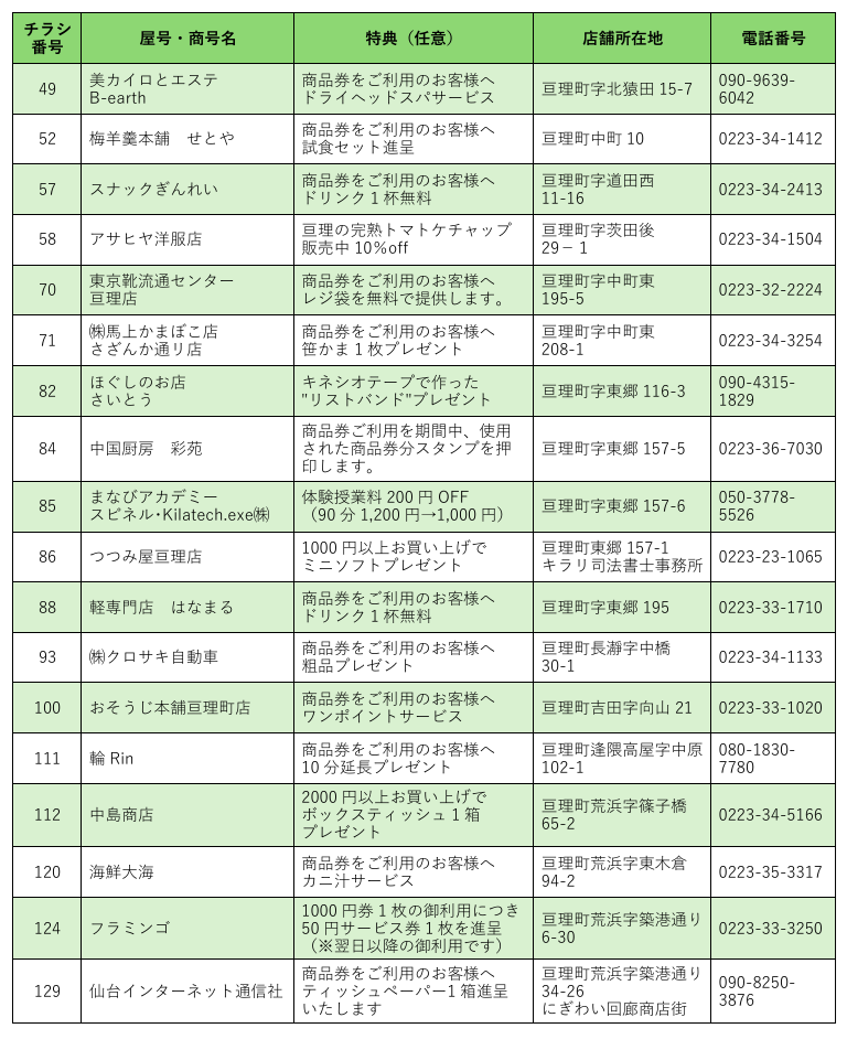 取扱加盟店一覧(加盟店は随時募集中)